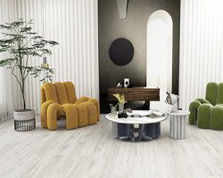 Pure Neutrality: Characterized by its extremely light and gentle color, which is virtually free of strong color casts. This purity brightens any space and maximizes the reflection of natural light. Minimalist Graining: The wood grain patterns are subtle, linear, and low-contrast, emphasizing the smooth, uninterrupted nature of the floor and contributing to the overall sense of calm. Understated Texture: Features a realistic surface texture created using "Embossed in Register (EIR)" technology. The subtle feel enhances the plank's authenticity while maintaining the clean, smooth visual profile expected of a Zen design.